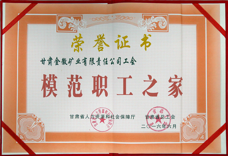 近日,金徽股份工會(huì)被省人力資源和社會(huì)保障廳、省總工會(huì)聯(lián)合授予“模范職工之家”榮譽(yù)稱號(hào)。